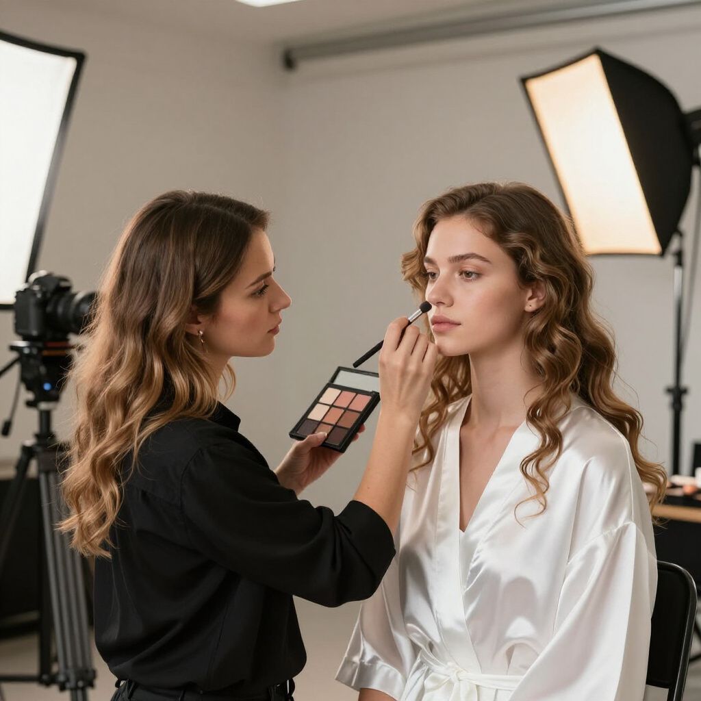 Flawless makeup tailored for photography, enhancing your features under studio lighting.